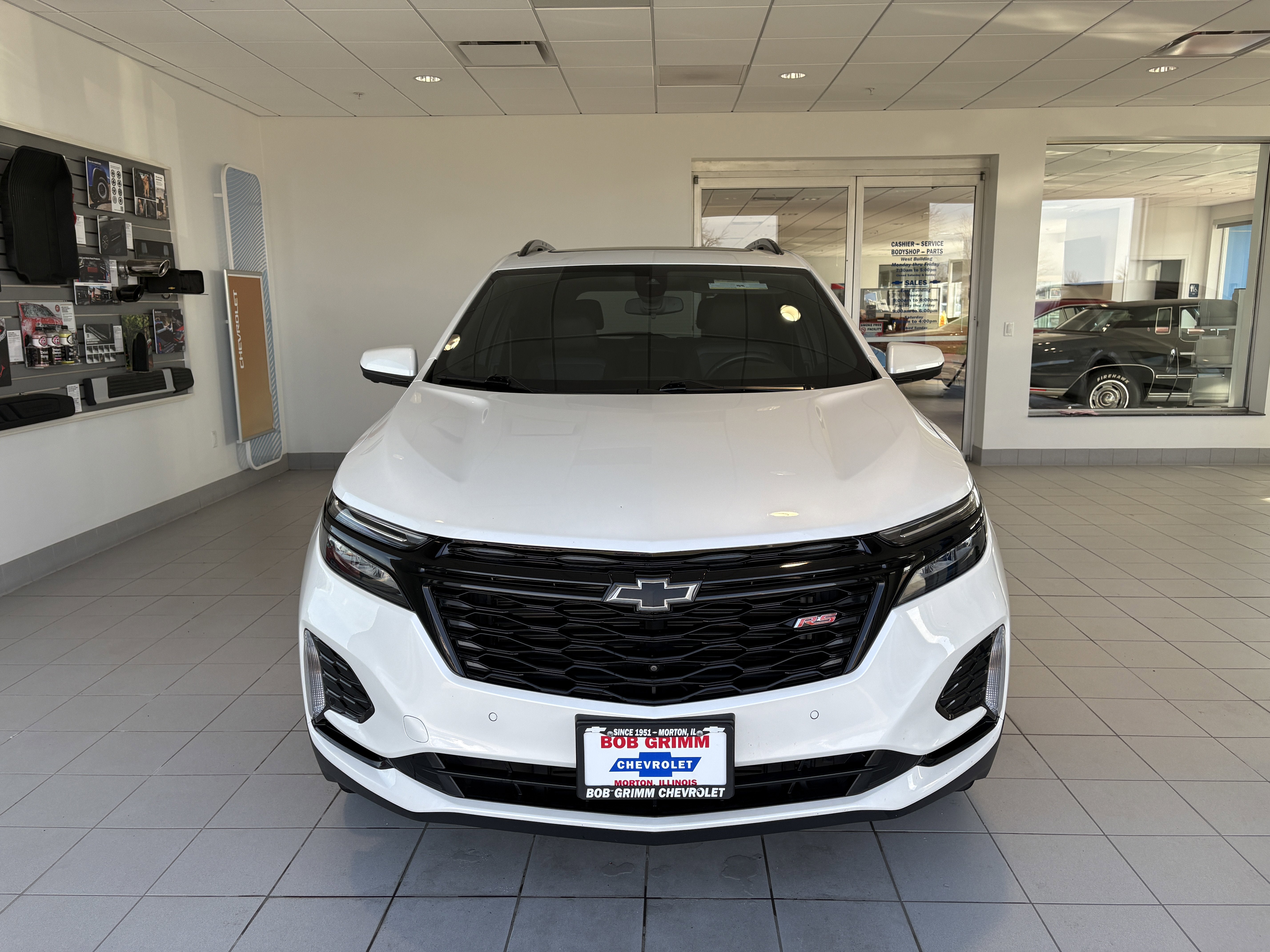 Equinox RS Priced below KBB Fair Purchase Price! ONE OWNER, LOCAL TRADE IN, AWD, 120-Volt Power Outlet, 19 Aluminum Wheels, 2 USB Data Ports, 2 USB Data Ports w/SD Card Reader, Adaptive Cruise Control, Advanced Safety Package, Bose Premium 7-Speaker Audio System Feature, Driver Seatback Map Pocket, HD Surround Vision, Heated Steering Wheel, Infotainment Package, Outside Heated Power-Adjustable Mirrors, Perforated Leather-Appointed Seat Trim, Power driver seat, Power Liftgate, Power Sunroof, Preferred Equipment Group 1RS, Radio: Chevrolet Infotainment 3 Plus System, RS Leather Package, Safety & Infotainment Package.24/30 City/Highway MPGExperience the VIP treatment at Bob Grimm Chevrolet where for over 65 years we have been making the purchase experience fun, friendly and fast! When you make an appointment to see this vehicle, it will be pulled up in front of the building and ready for your test drive.